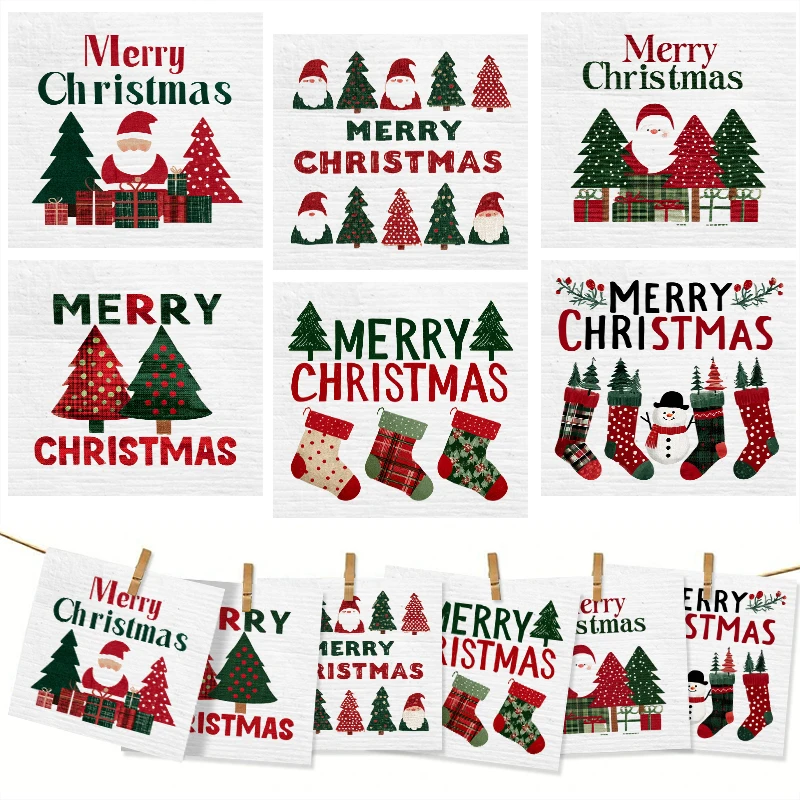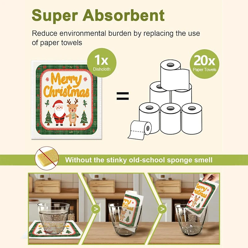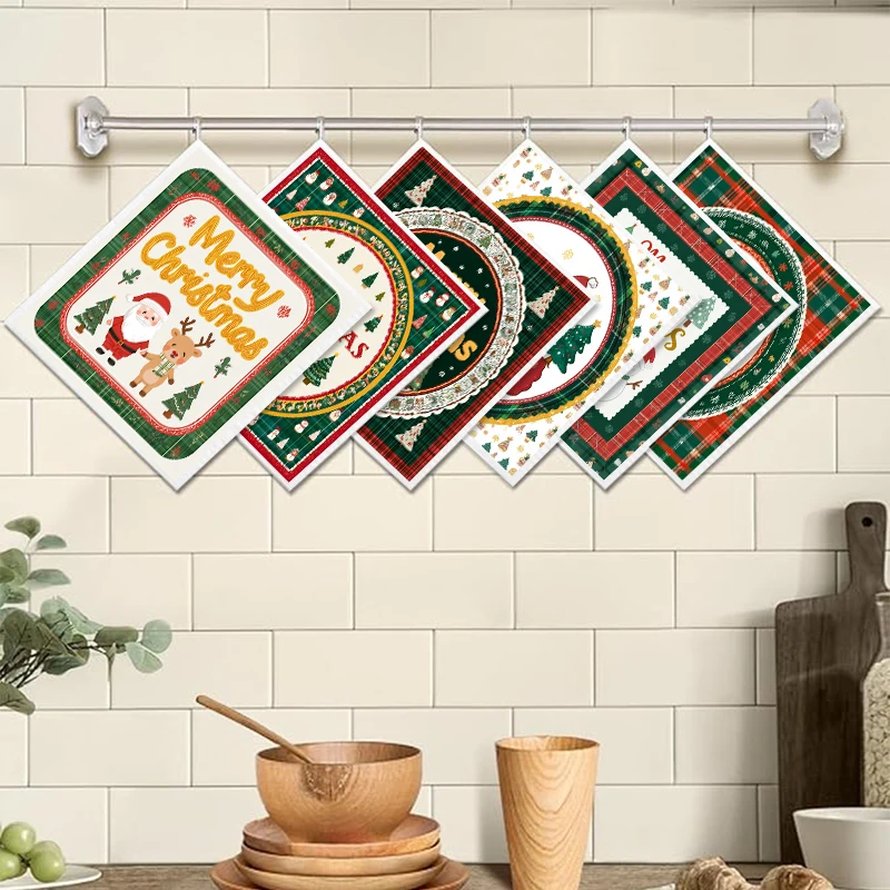 6PCS Swedish Dishcloths Kitchen Dish Towels Absorbent Dish Rags Soft Non-woven Cloths For Washing Dishes Cleaning Christmas Gift